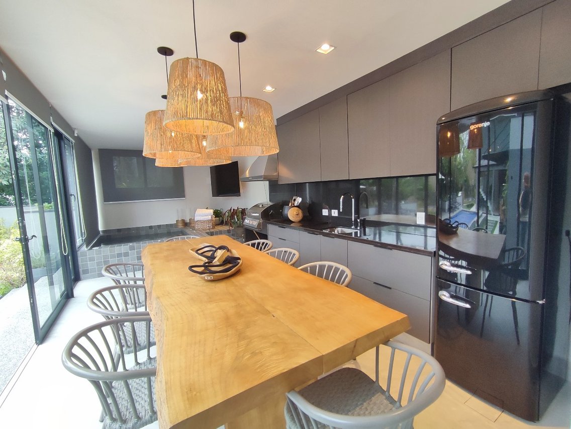 ✅ Living amplo e integrado à sala de jantar, proporcionando ambientes sofisticados e aconchegantes.