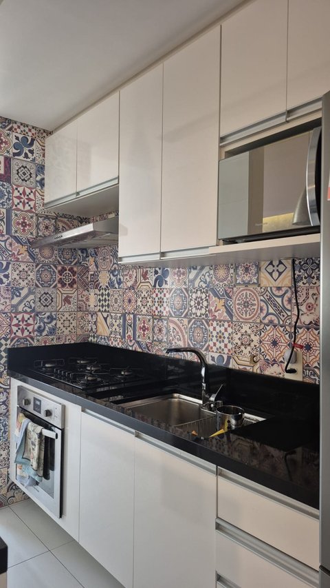 Apartamento de 2 dormitórios com 1 suite, repleto de móveis planejados, forno, Cooktop e mesa em laca com 4 cadeiras.